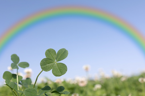 四つ葉のクローバー虹と青空 - 虹のストックフォトや画像を多数ご用意。
