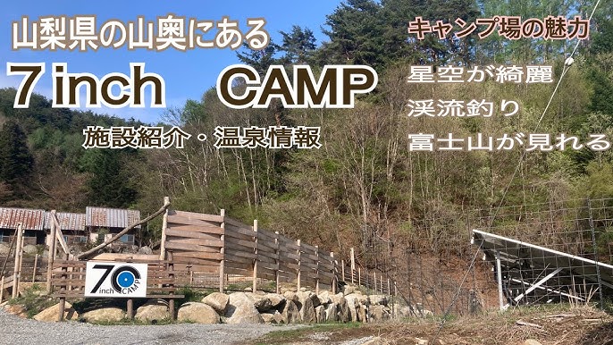 キャンプ施設紹介 7inch CAMPS、温泉情報星空が綺麗渓流釣り富士山が見れる。
