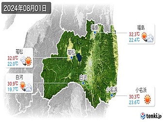 浪江 福島県 の過去のアメダス 2024年08月01日- 日本気象協会。
