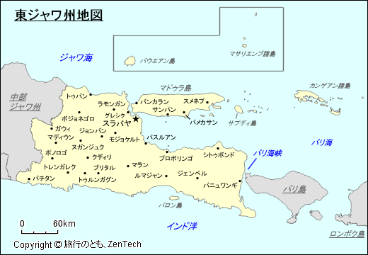 ジャワ島地図 - 旅行のとも、ZenTech。
