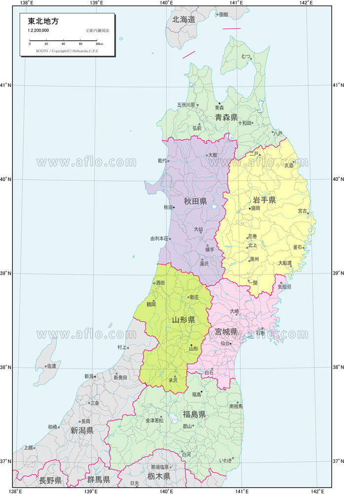 東北地方 行政区分図ベクター地図素材のダウンロード販売アフロモール。