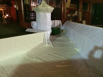 浅草寺の正月 本堂内の賽銭箱を拡張や本堂前の大門飾り、各お堂のお飾りなどを行っておりますThe Shinmon Tatsugoro。