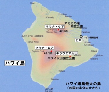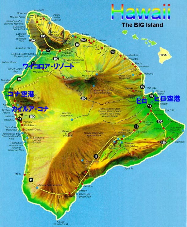 ハワイ島の地図、概要、飛行機時刻表 Map of Hawaii。