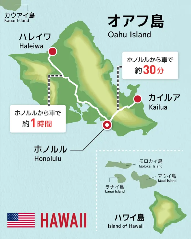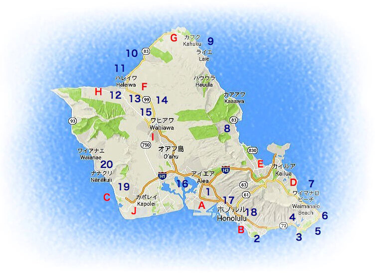 オアフ島の地図・観光マップエリアを知って、初ハワイでも安心アロハスマイル ALOHA SMILE。