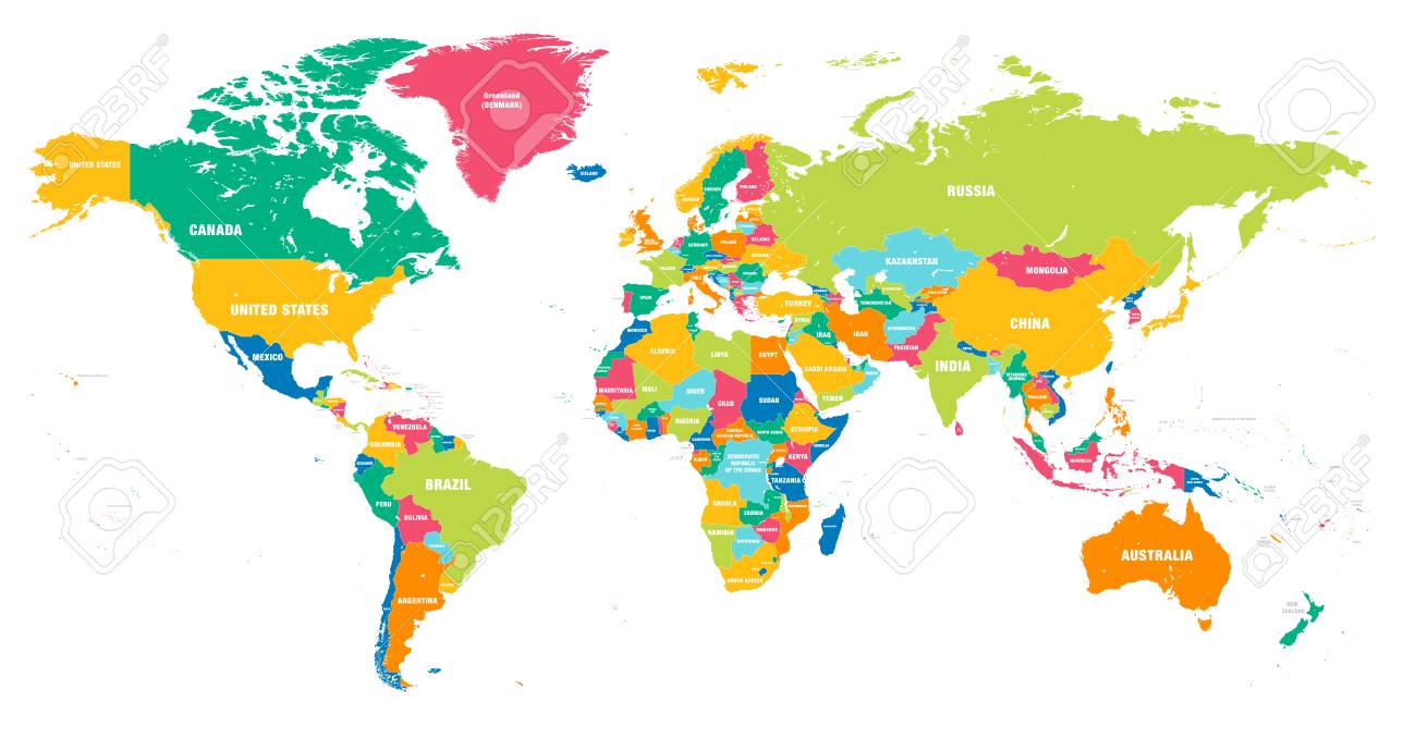 カラフルなハワイのベクトル世界地図と国のすべての名前の完全な詳細のイラスト素材・ベクター Image 87890461。