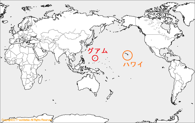 ハワイ・グアム・サイパン地図。