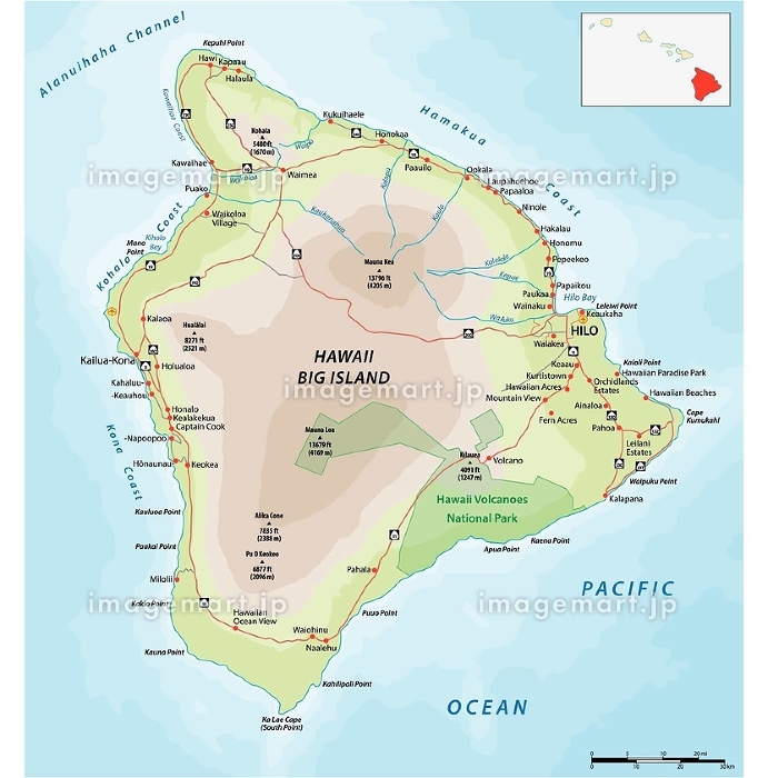 ハワイ ハワイ諸島 ハワイ島 地図の写真素材。