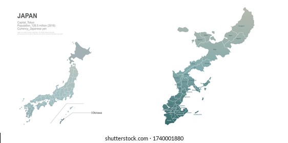 日本列島の中の沖縄地方、日本地図のイラスト素材247122909 毎月1点無料 フリー。