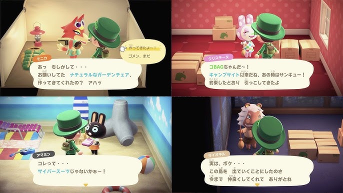 あつ森 キャンプサイトに呼んだナターシャに「もくせいチェア」をあげた ハイドとパトラとさすけとダリーとアザラクに「サイバースーツ」をあげた 引っ越しが終わったボブに「まるたのくい」のレシピをもらった-。