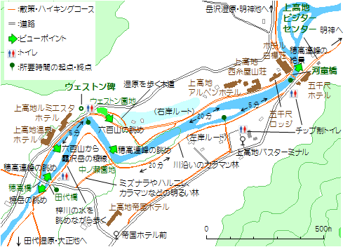 上高地を歩く 散策コースガイド。