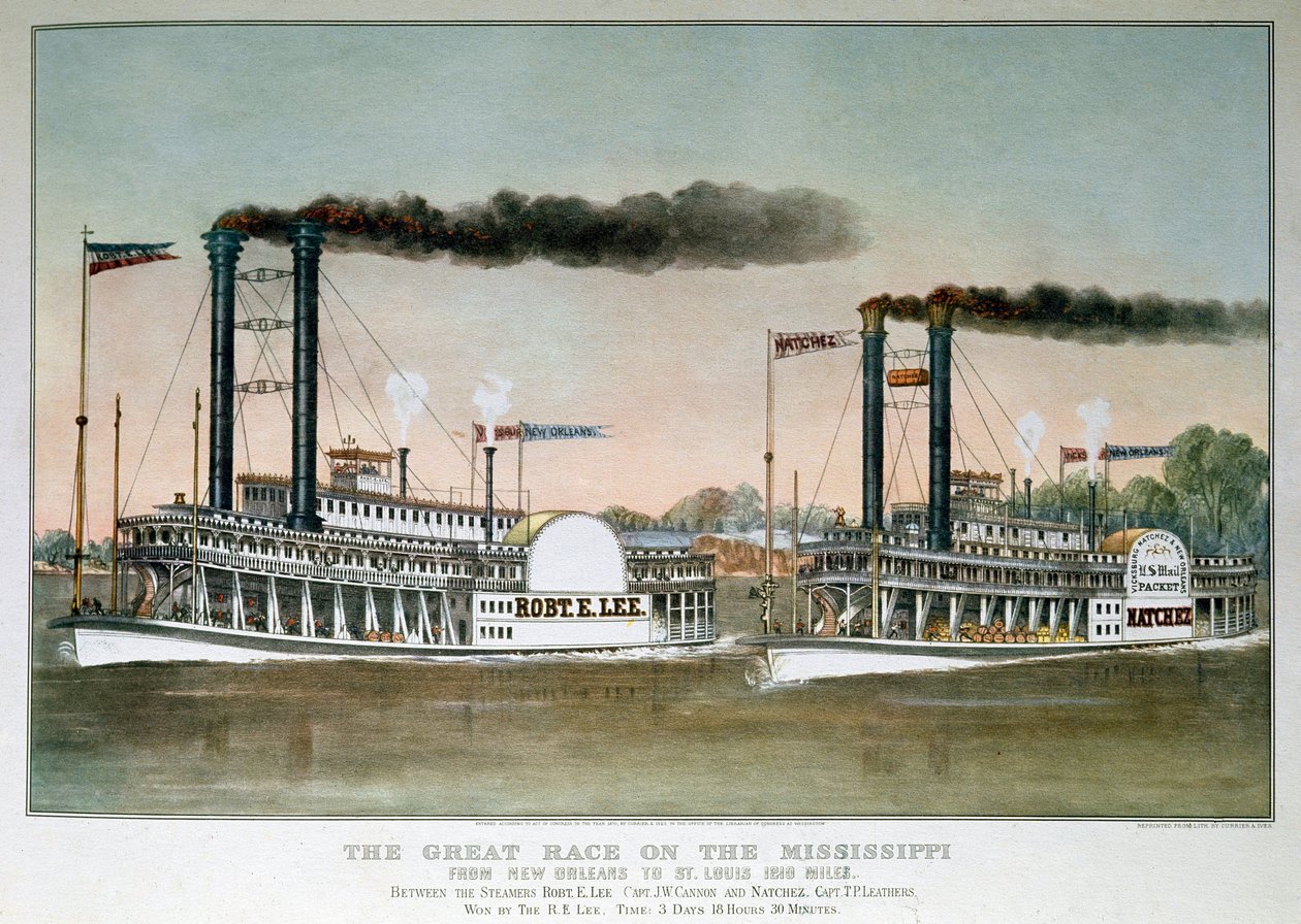 ニューオリンズからセントルイスまで1210マイルのミシシッピの偉大なレース。ロバート・E・リー号。