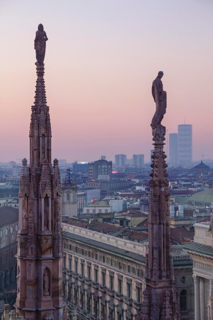 夕方のミラノ、ドゥオーモのテラスからの街の眺めPremium写真。