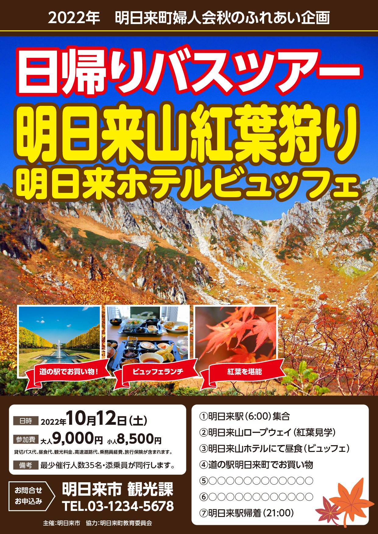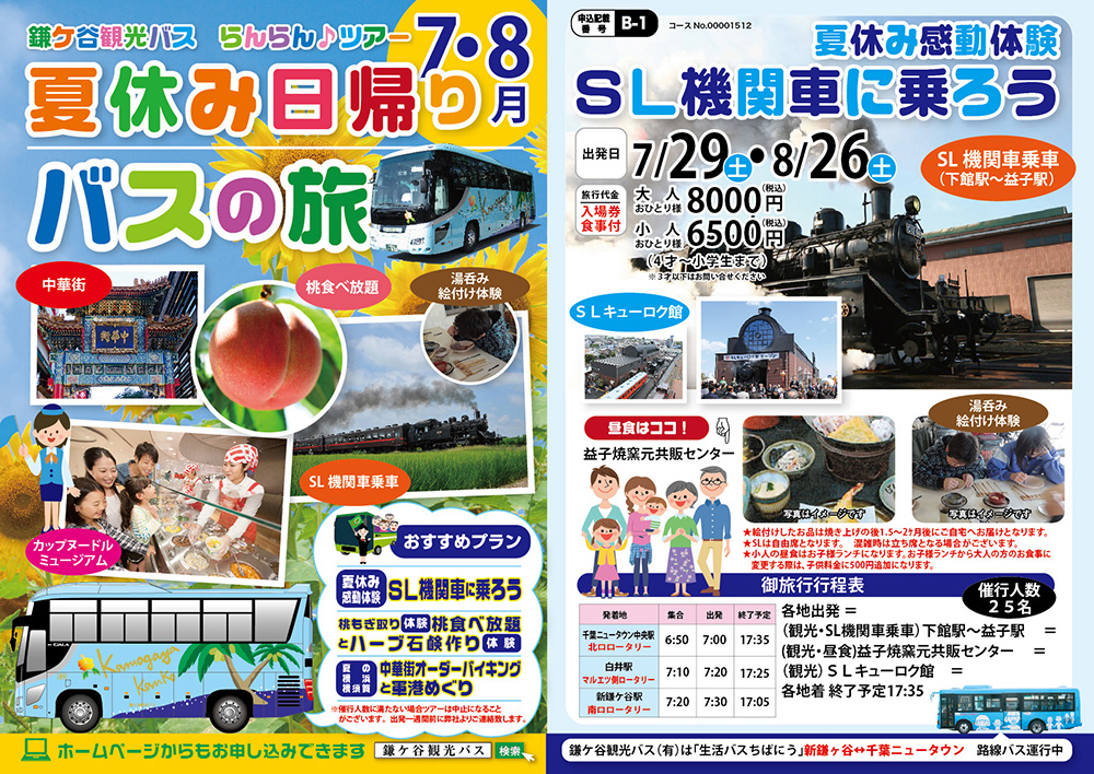 日帰りバスツアーのチラシアート&デザイン タッグ。