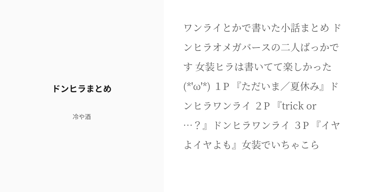 R-18BL松ドンヒラ ドンヒラまとめ - 冷や酒の小説 -。