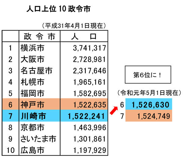 川崎市が“日本の五大都市”まであと一歩、神戸市を抜き人口で全国6位に横浜日吉新聞。