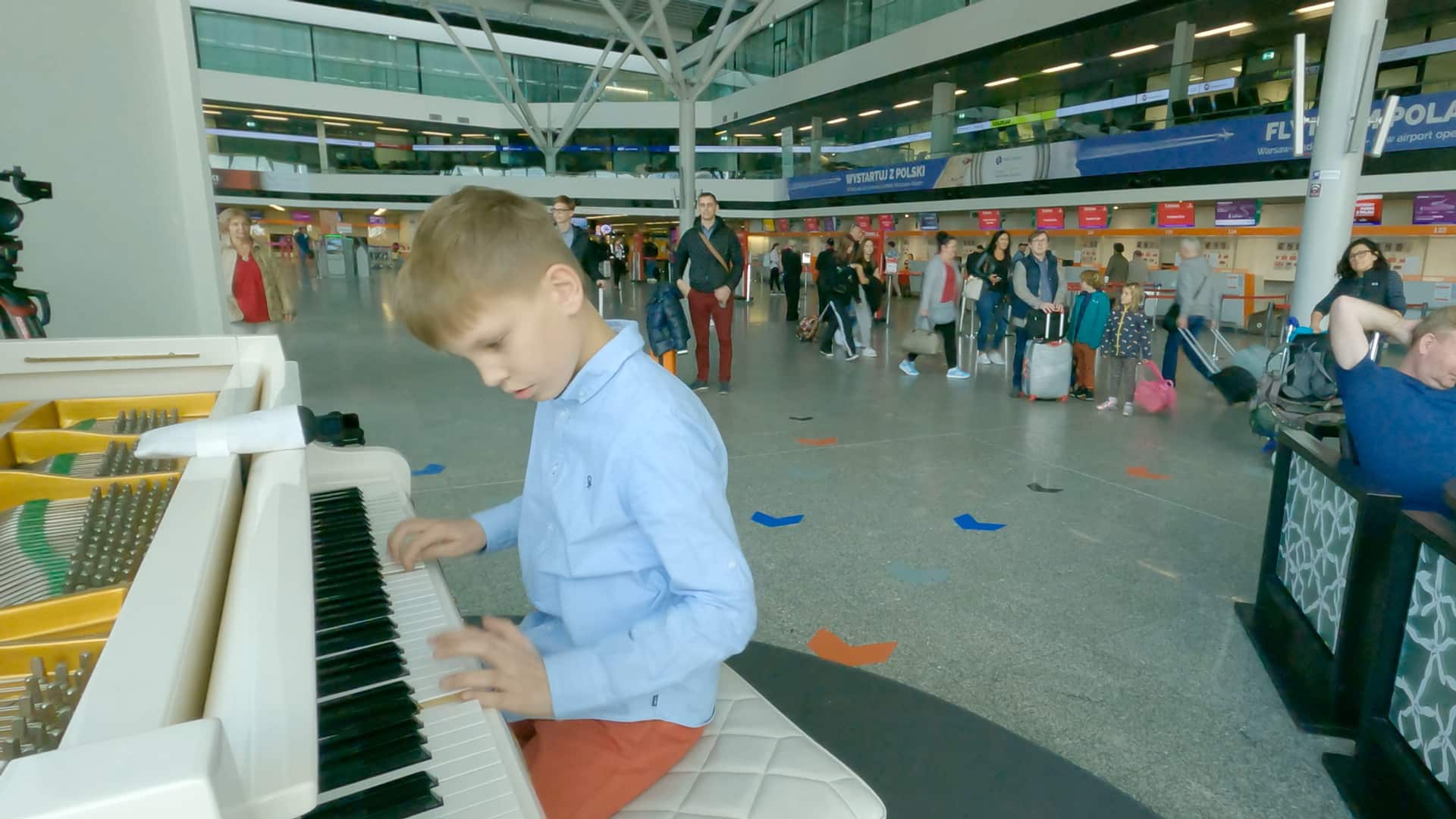 ワルシャワ・ショパン空港のストリートピアノ polandwarsawchopinpianolittlepianiststreetpianoclassicalmusicairportairportpianochopinbolerofryderykchopinホーランドワルシャワワルシャワショパン空港ストリートピアノ。
