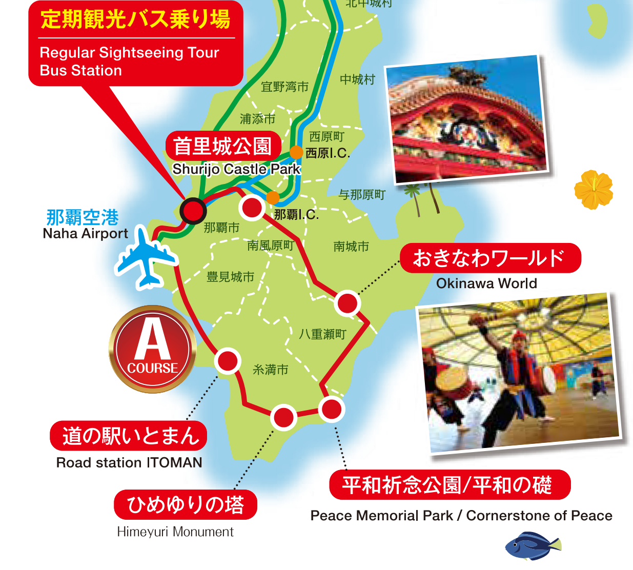 バスレーンマップ沖縄観光。