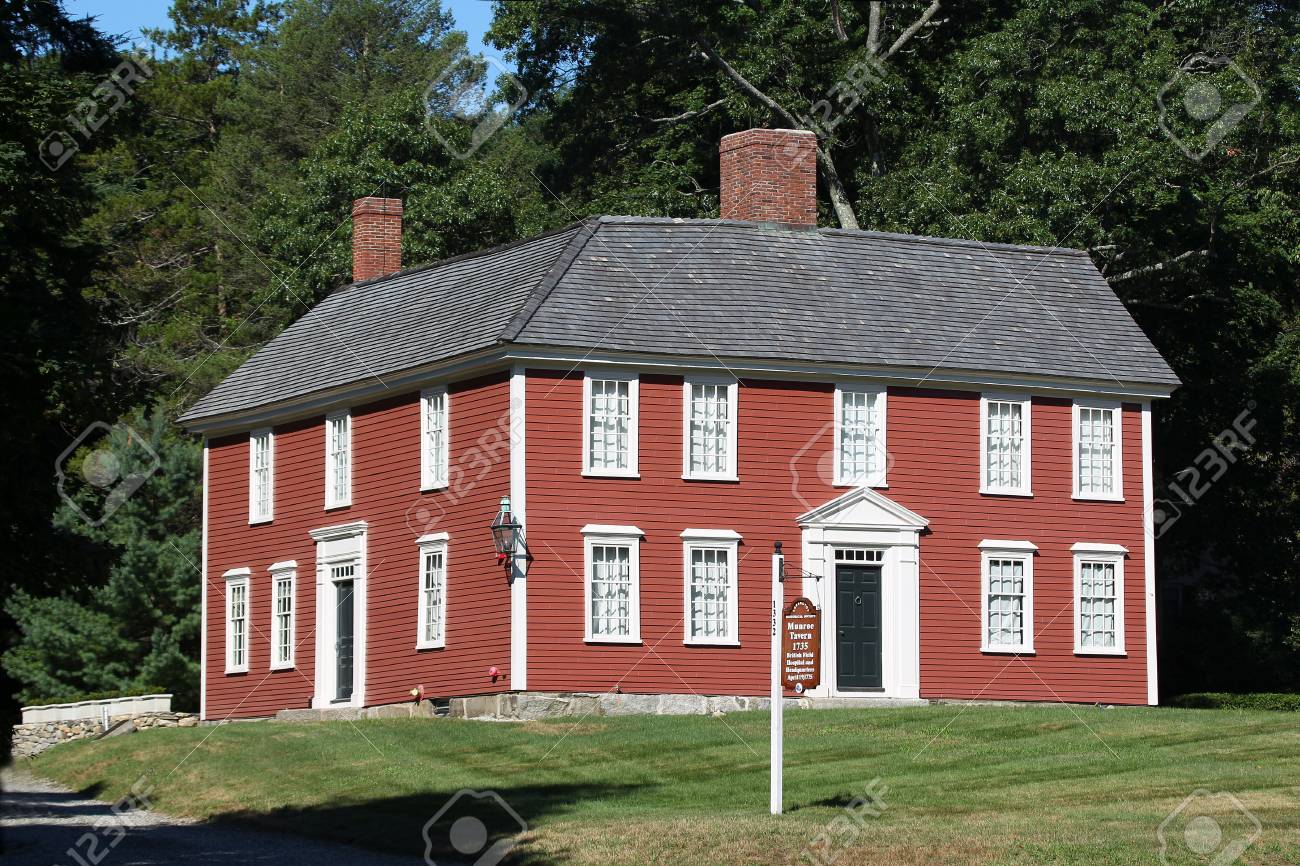 1332 マサチューセッツ アベニュー、レキシントン、マサチューセッツ州に位置するマンロー酒場は戦いのレキシントンとコンコードで顕著な役割を担った独立戦争のサイトです。それが今保持・レキシントン歴史表博物館として運営の写真素材・画像素材。