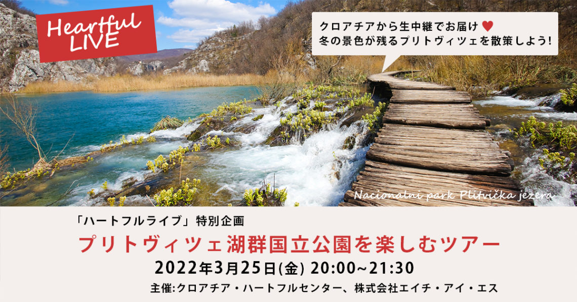 3月25日20時〜 ハートフルライブ特別企画「プリトヴィツェ湖群国立公園を楽しむツアー」クロアチア・ハートフルセンタ。