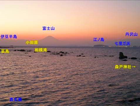 絶景でした 真名瀬海岸は名島 菜島 の鳥居を眺める夕日と富士山の絶景スポット。けいブログ。