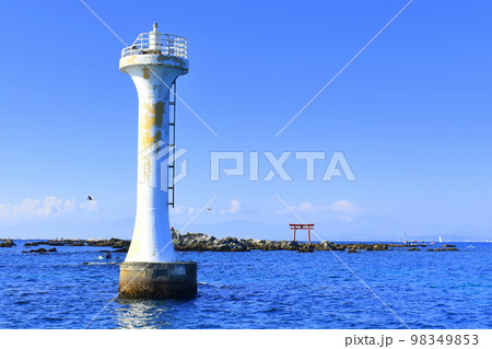 葉山 名島 菜島 の赤い鳥居と葉山灯台の写真素材101666707- PIXTA。