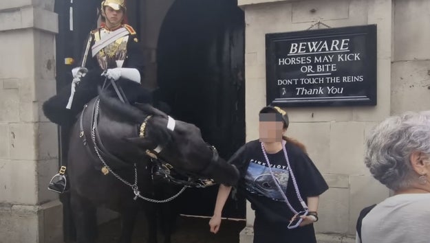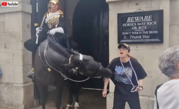近衛兵の馬が観光客をガブリ、女性が地面に 。「安全な距離を保って」と英陸軍 BuzzFeed。
