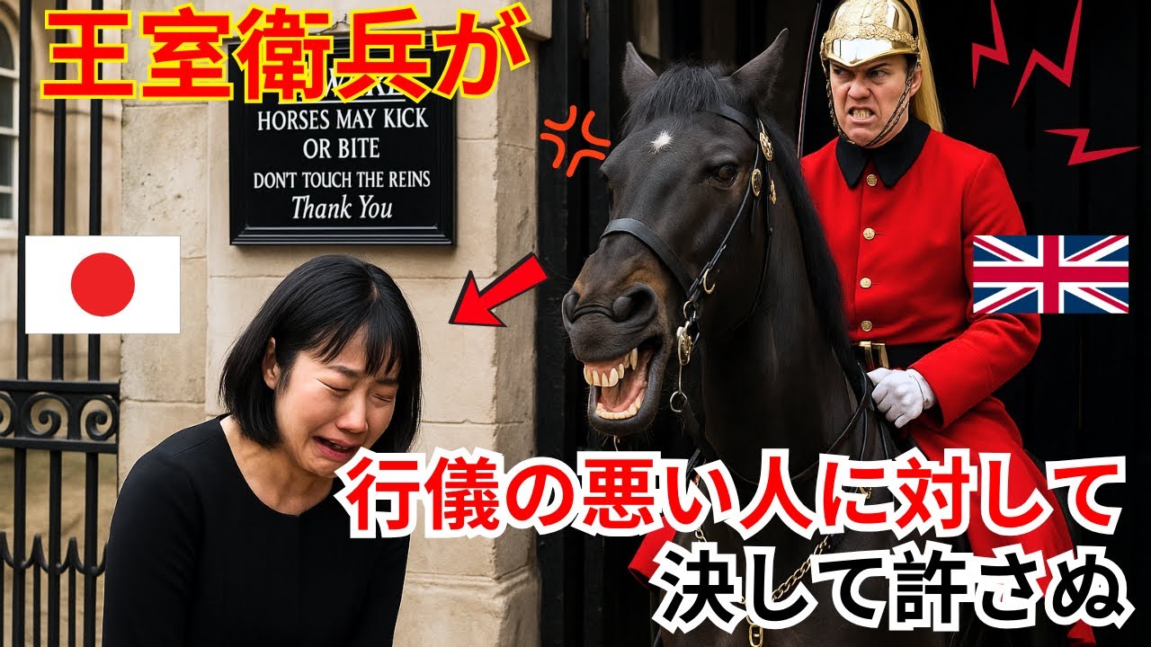 海外の反応 「今すぐ日本人を排除しろ!」イギリス近衛兵の馬が日本人と中国人への違いすぎる行動に世界中が驚愕 - YouTube。