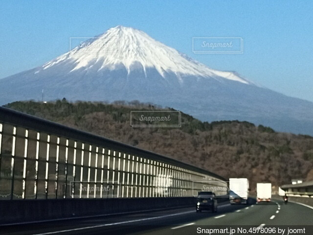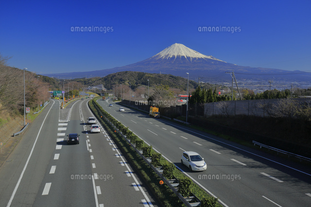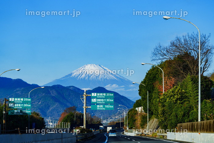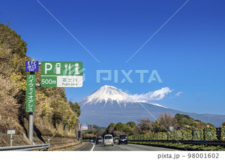 東名高速道路の上り線 富士川サービスエリア付近の道路上から望む冬の富士山の写真素材98001602- PIXTA。