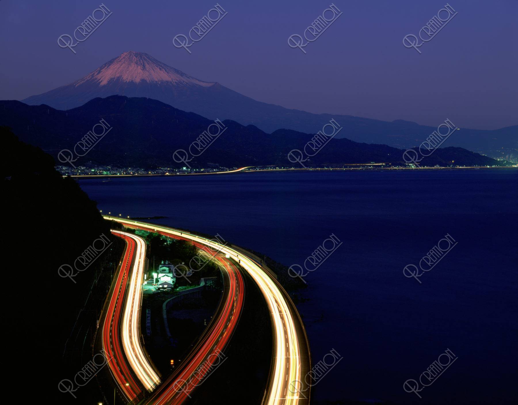 駿河湾、清水町、静岡県の東名高速道路の長い露出で冬の富士山。の写真素材・画像素材 Image 86172776。