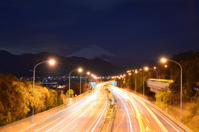 東名と富士山の夜景写真アールクリエーション。