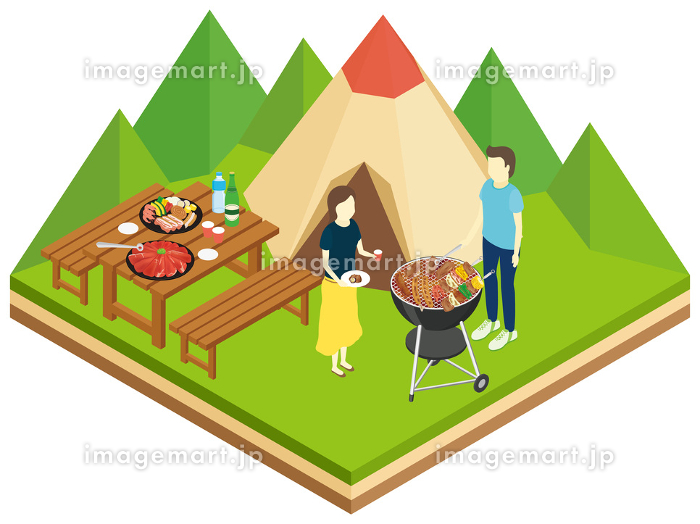 キャンプをする男女二人 アイソメトリックのイラスト素材138354030- イメージマート。