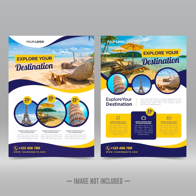 旅行代理店の A4 チラシ テンプレート 簡単に編集可能なモダンな旅行チラシPremiumベクトル素材。