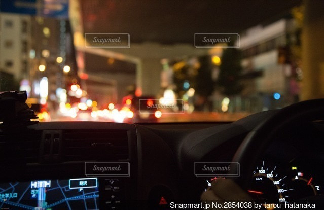196 運転席 男性 夜 Stock。