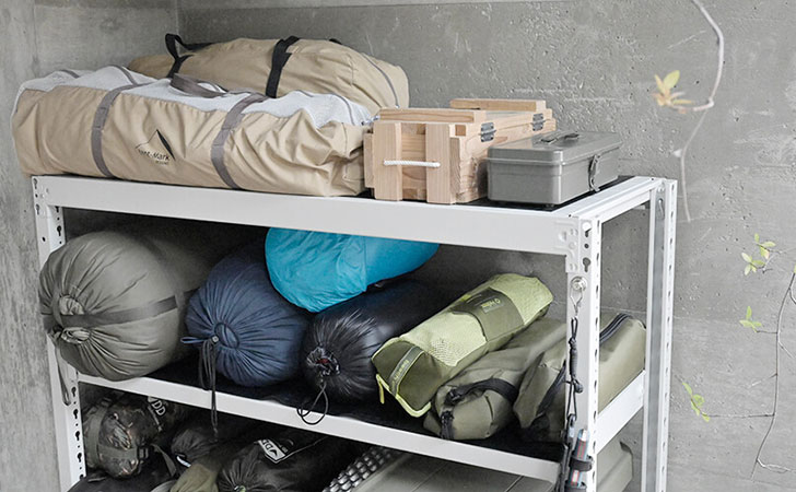 スチールラックはアウトドア・キャンプ用品の収納にもおすすめ。