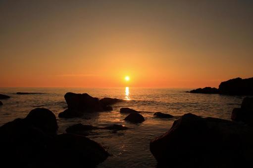 黄金岬の夕日 北海道留萌市Sunset at Rumoi。