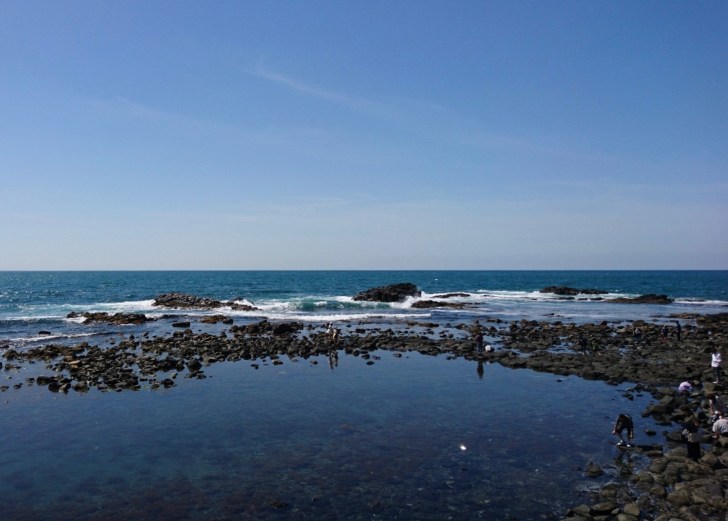 日本一の夕日が見える場所にある岩礁まで遊歩道 ウォーキング 黄金岬。