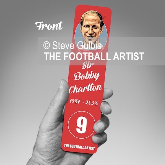 サー・ボビー・チャールトン、イラスト入りブックマーク、両面、マンチェスター・ユナイテッド、フットボール、サッカー、ギフト - Etsy。