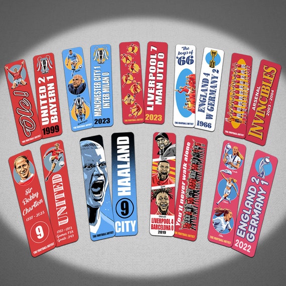 サー・ボビー・チャールトン、イラスト入りブックマーク、両面、マンチェスター・ユナイテッド、フットボール、サッカー、ギフト - Etsy 日本。