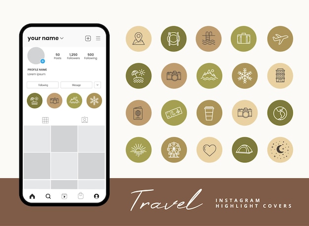 Instagram 旅行ハイライトカバーInstagram ストーリー用のニュートラルな背景に。