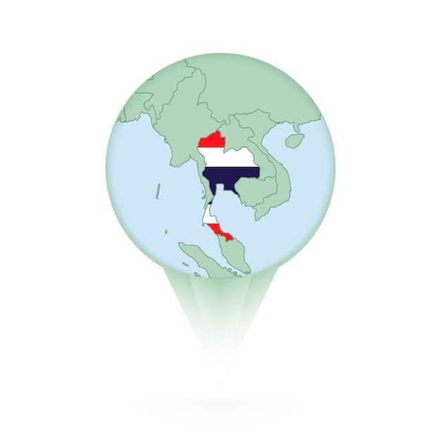アジアのタイ地図、タイの場所とフラグを示すアイコン。Premiumベクトル素材。