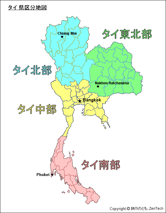 タイ県区分地図 - 旅行のとも、ZenTech。
