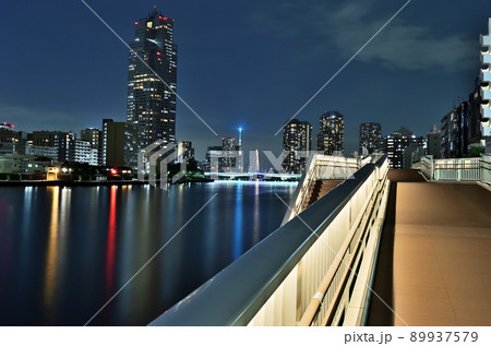 月島から見るライトアップされた佃大橋と中央大橋とスカイツリーの写真素材89937579- PIXTA。