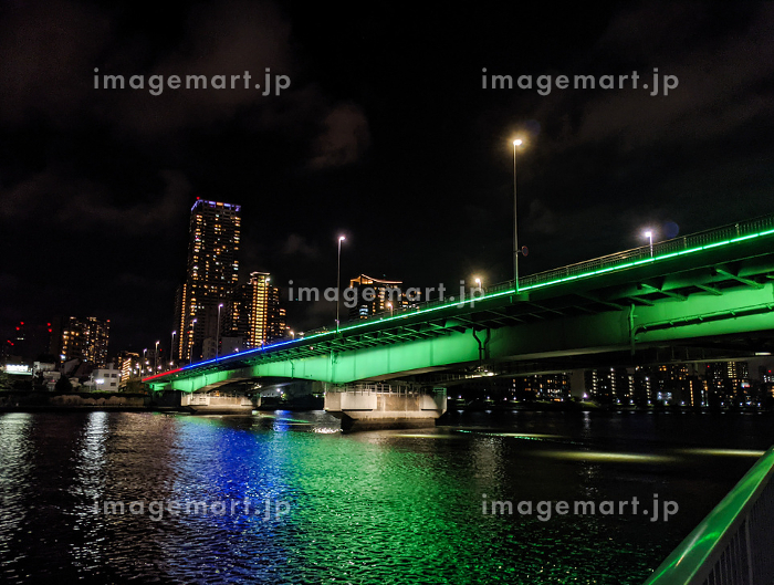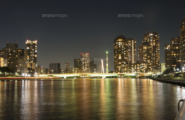隅田川とライトアップの佃大橋 東京夜景 10309002751 の写真・イラスト素材アマナイメージズ。
