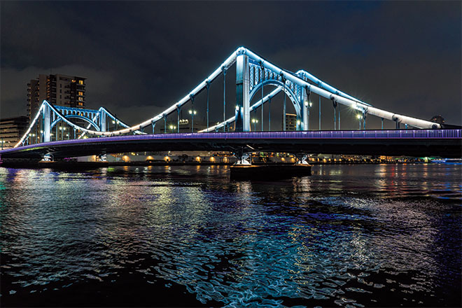 隅田川に架るライトアップが美しい個性豊かな12の橋を紹介。