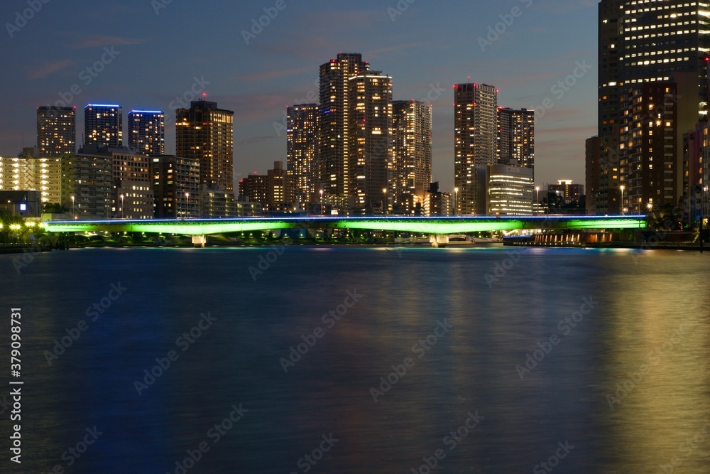 隅田川ライトアップ-Sumidariver illuminationTokyo Night View。