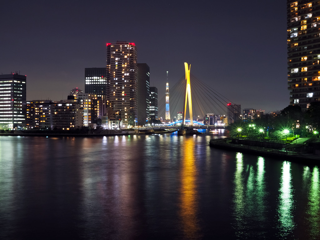 佃大橋中央大橋夜景ライトアップskytreenightview。