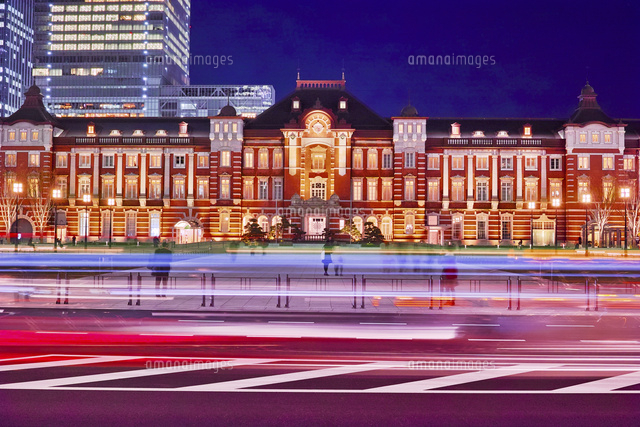 正面からの東京駅夜景 10898000495 の写真・イラスト素材アマナイメージズ。