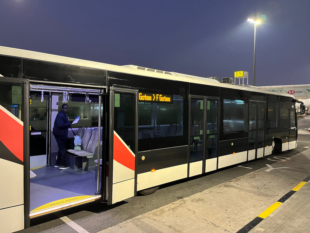 ドバイ空港 ターミナル3から2 Gate F。