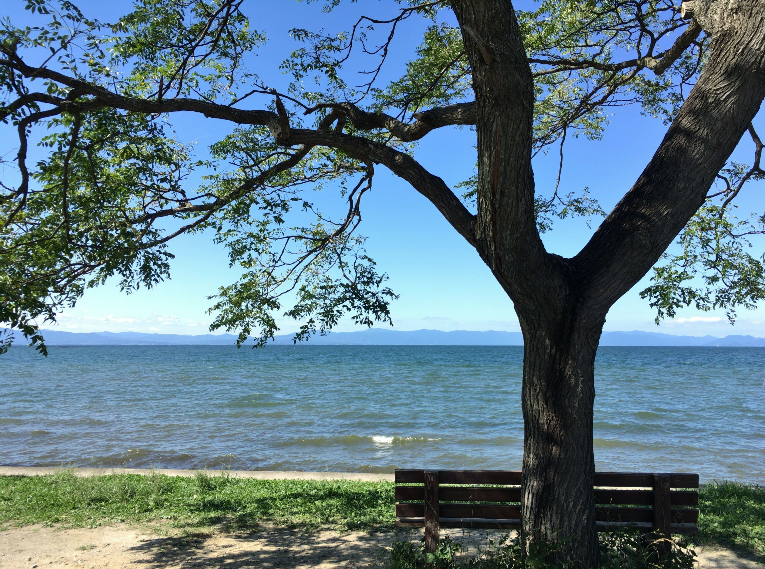 琵琶湖の美しさとあのベンチの景色。