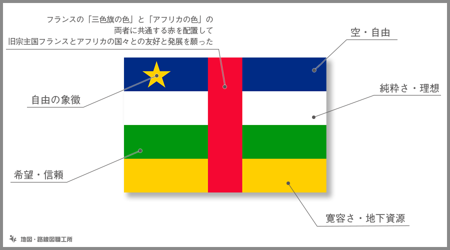 中央アフリカ国旗の由来・意味や特徴をイラスト解説。